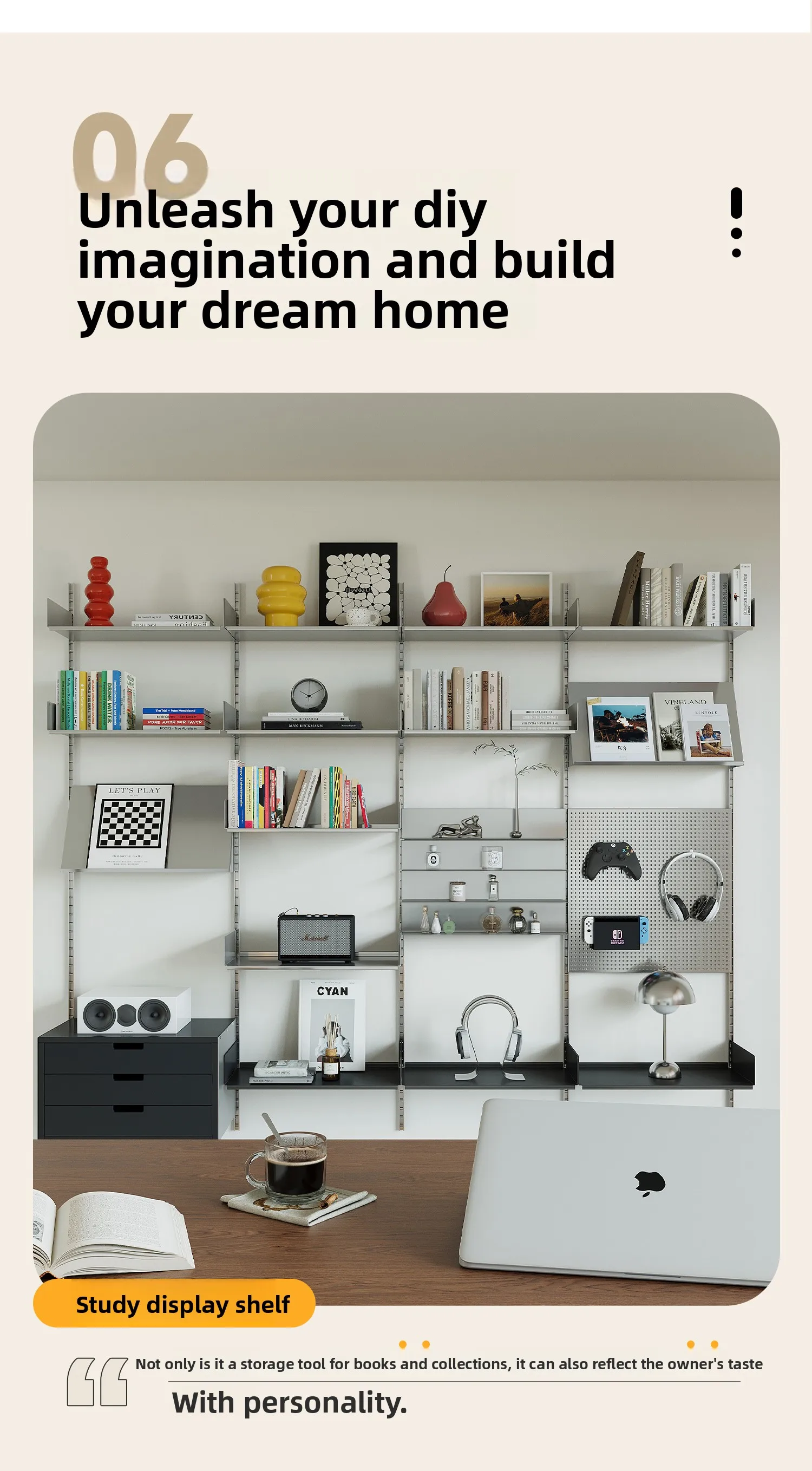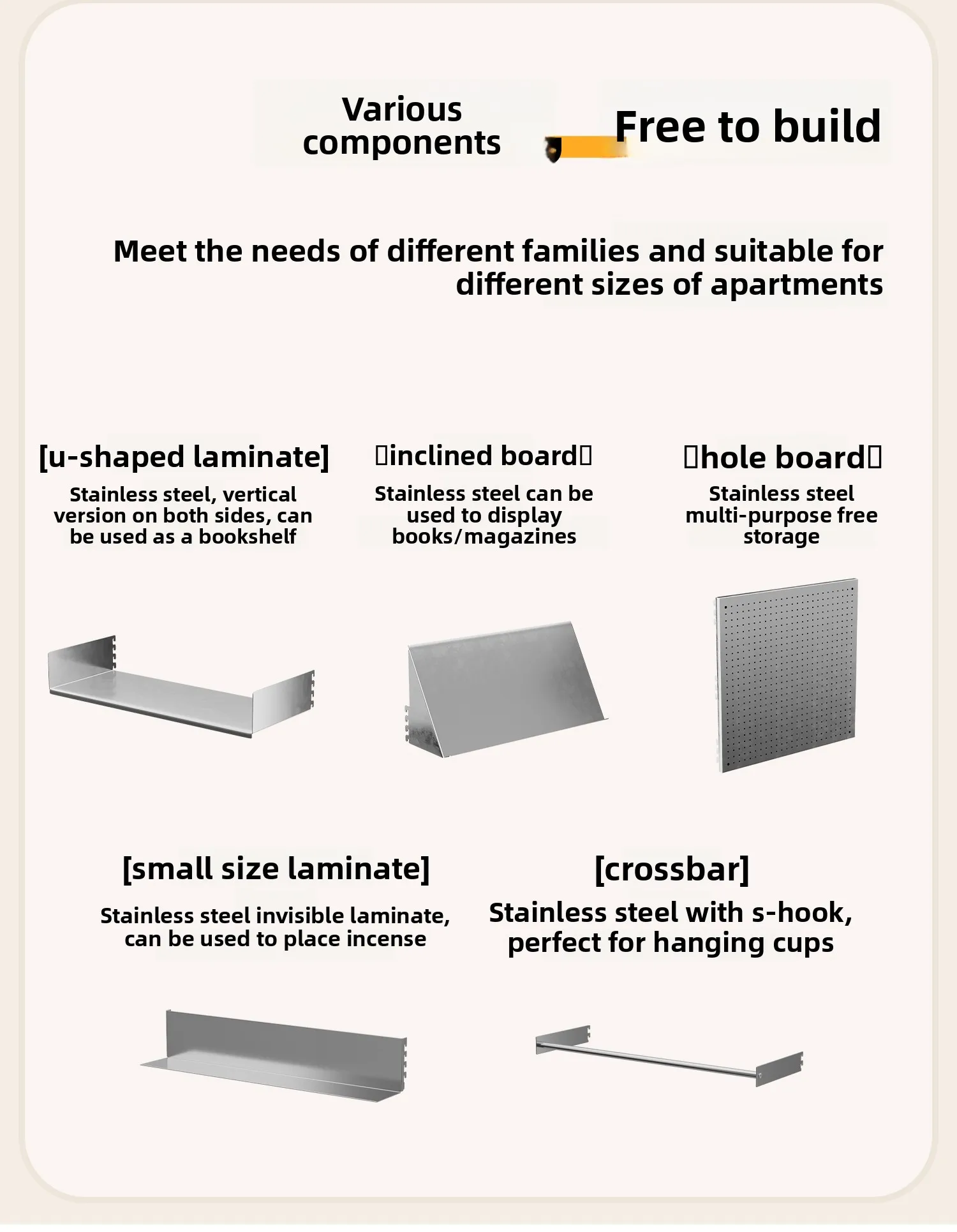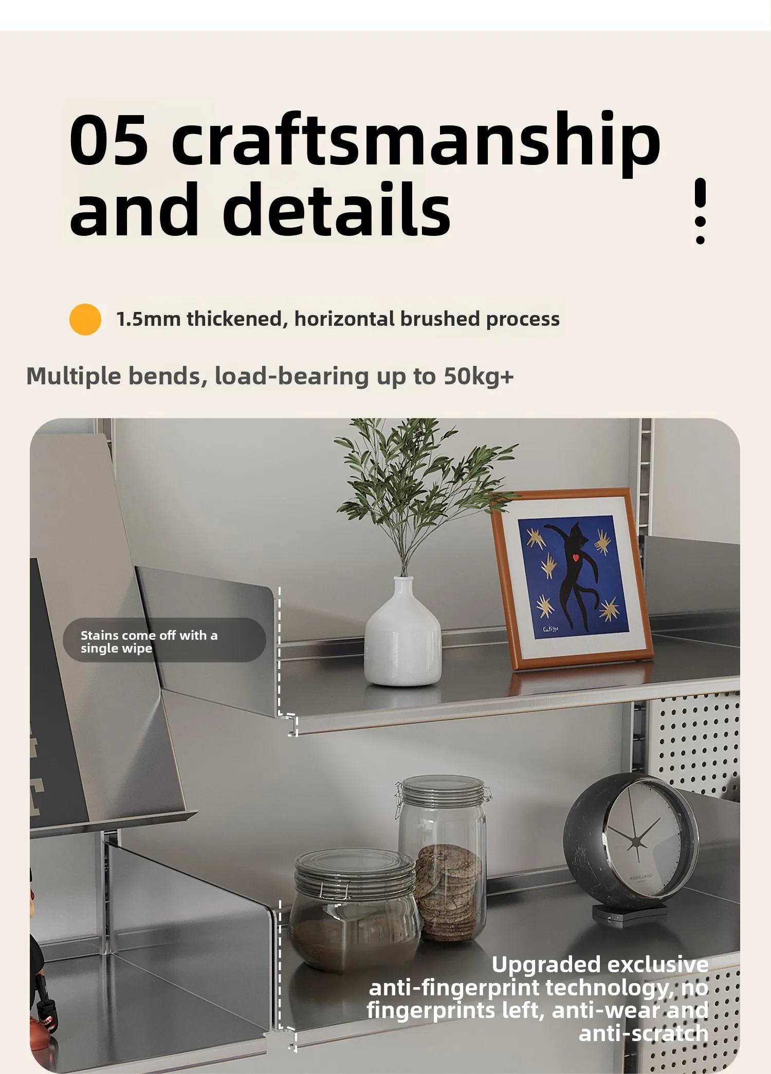 Modular Storage Shelf Stainless Steel DIY Bookcase for Living Room Space Saving Display Organizer Wall Mounted Showcase System