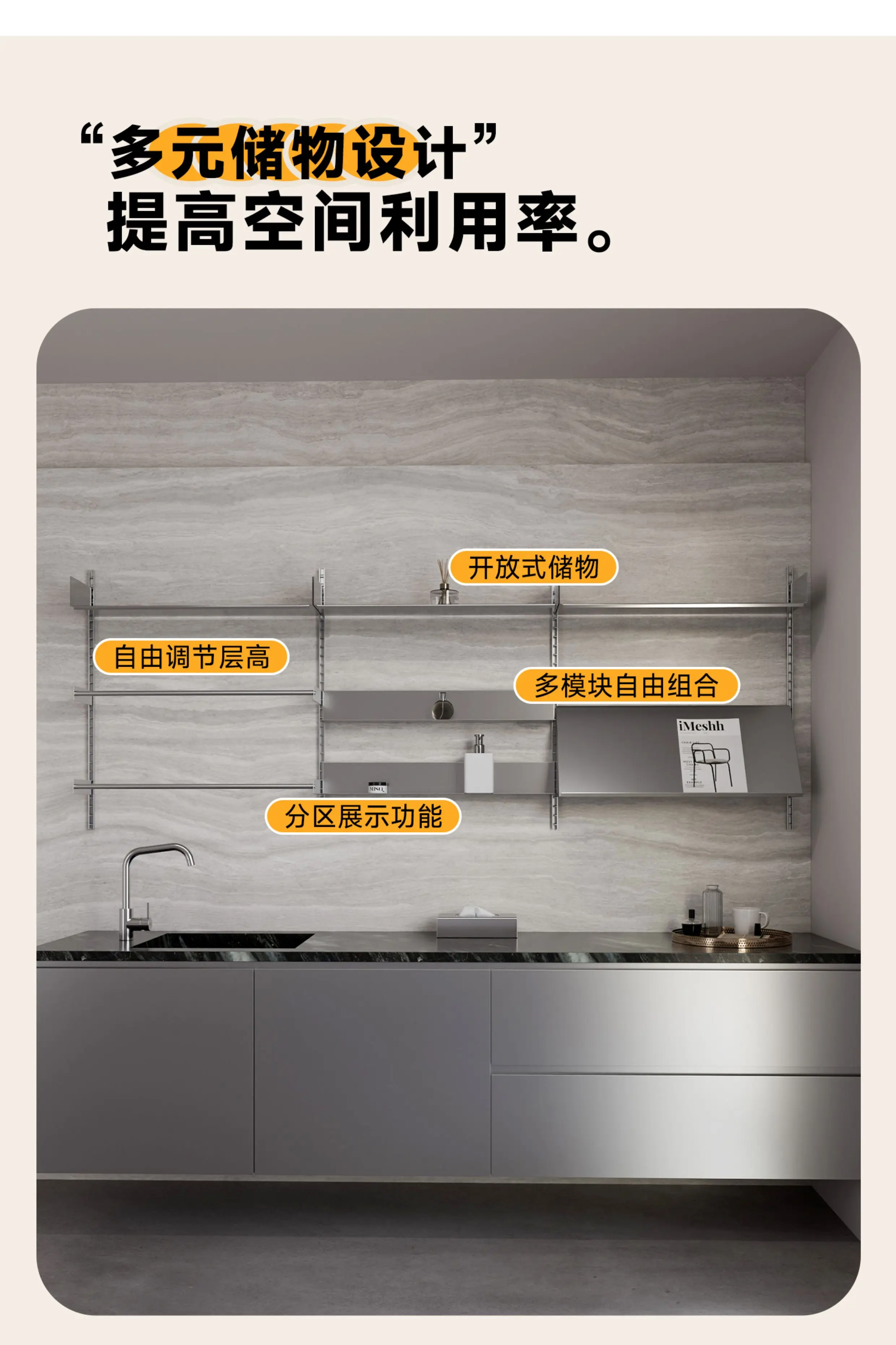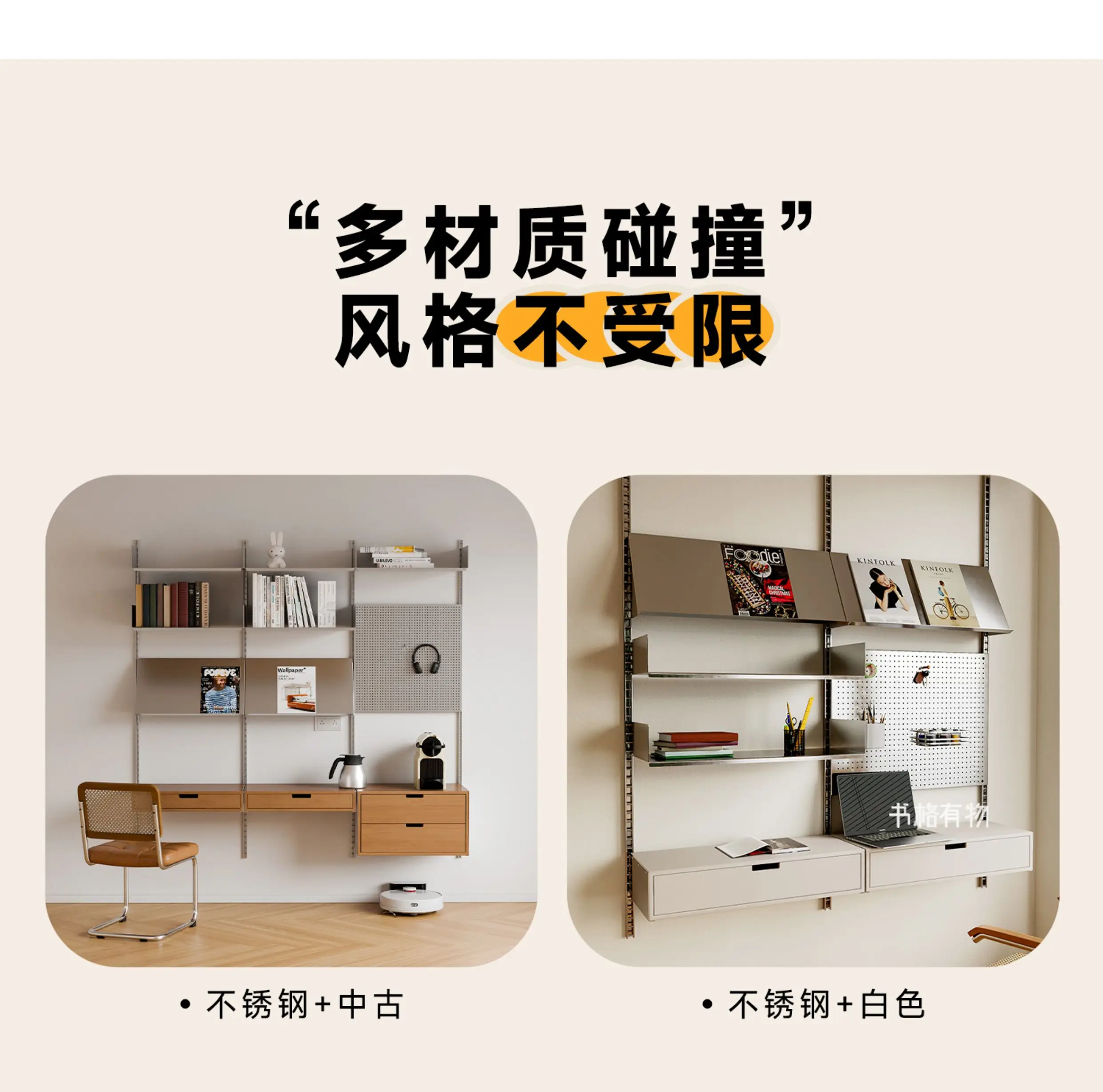 ‌Modular Wall-mounted Shelving Unit Simple Stainless Steel Display Rack Space-saving Storage Organizer for Home & Office Decor