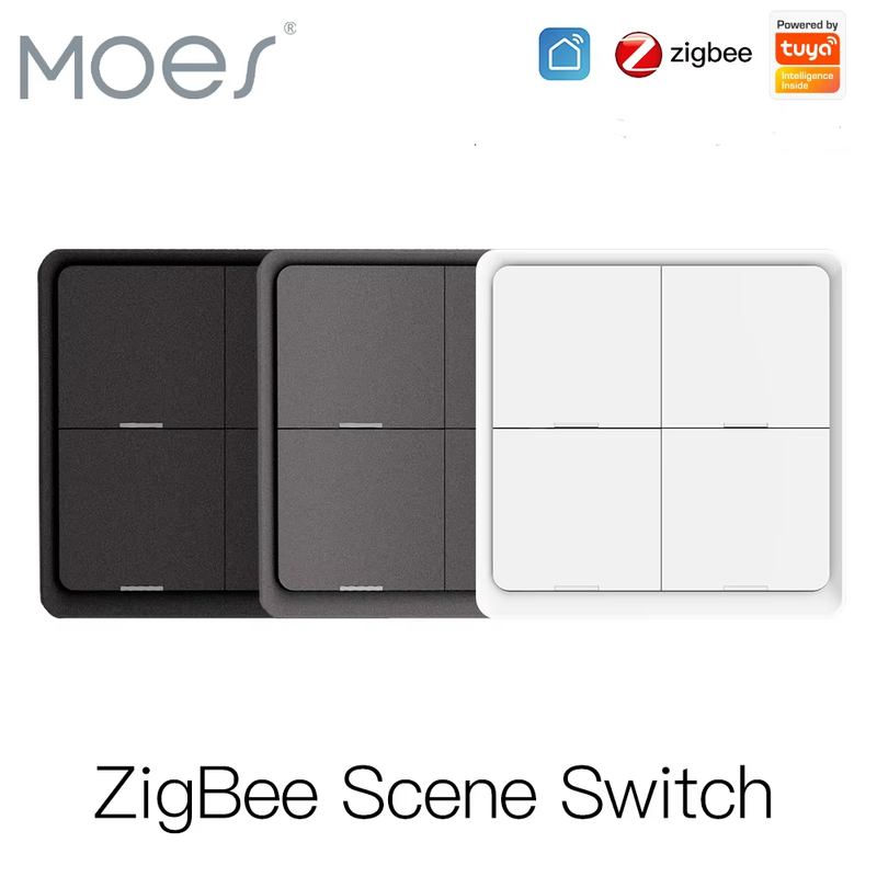 4 Gang Tuya ZigBee Wireless 12 Scene Switch Mechanical Push Button Controller 2MQTT Setup Battery Powered Smart Home Automation Scenario Switch for Tuya Smart Devices