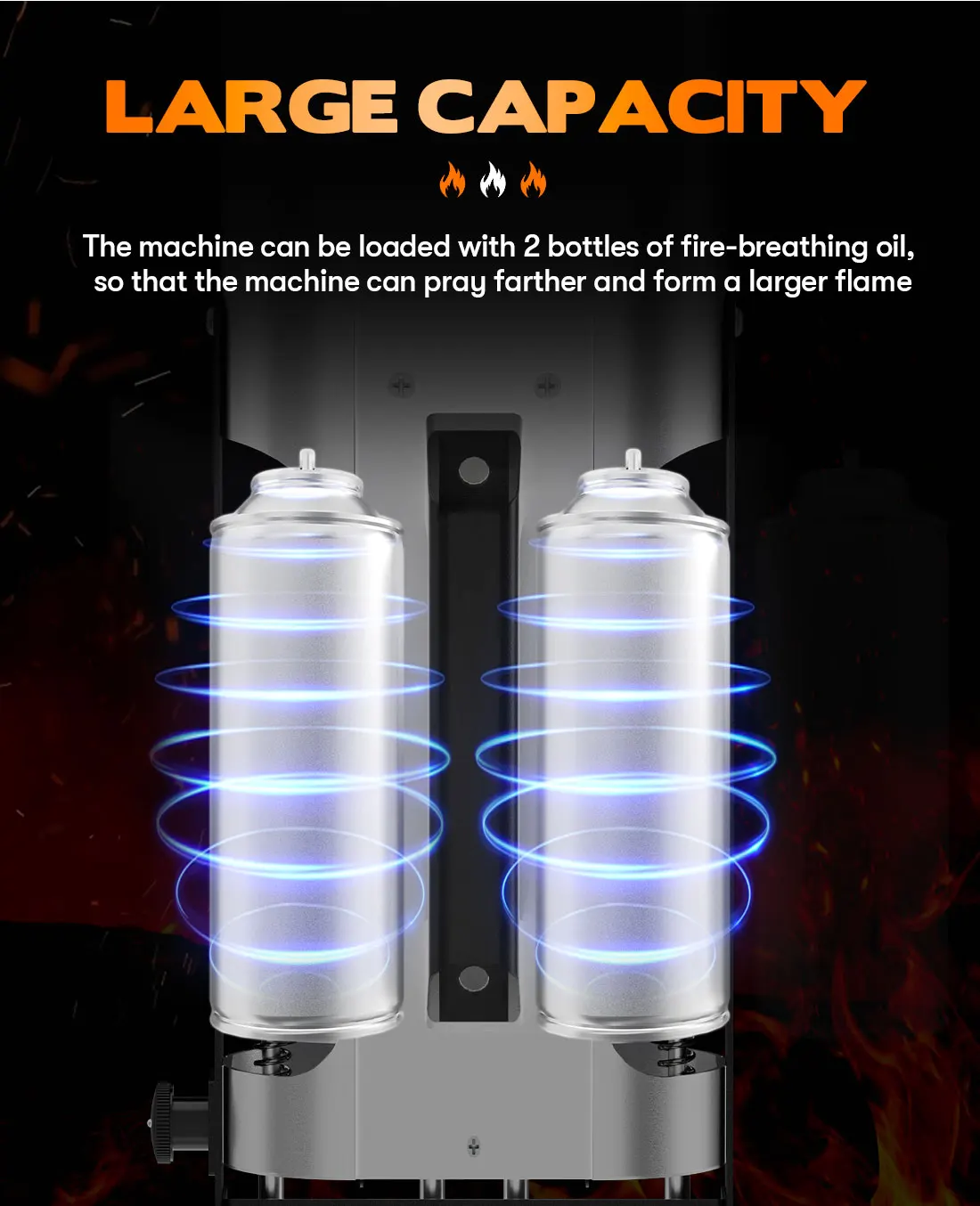 The machine can be loaded with 2 bottles of fire-breathing oil, so that the machine can spray farther and more rapid;