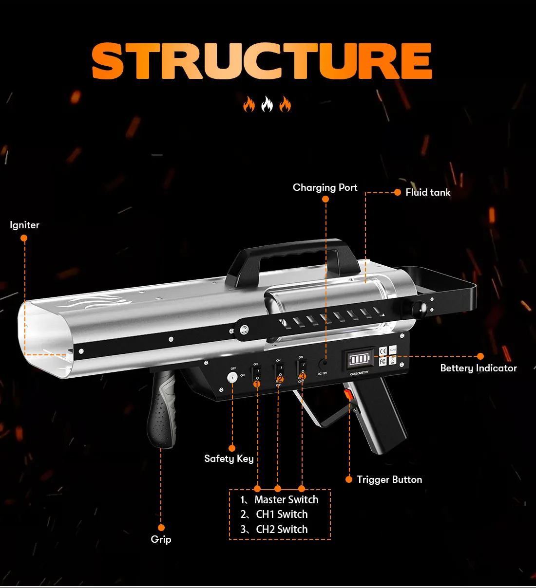 This handheld stage flame gun is independent design by MOKA, and has applied for appearance patent.