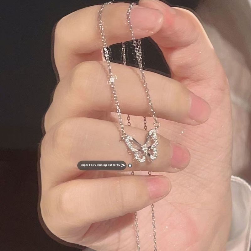 Moonstone Light Luxury And Simplicity All-match Necklace Clavicle Hollow Butterfly