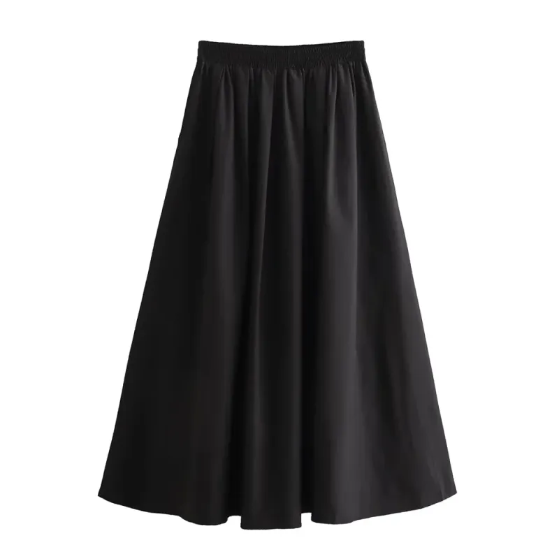 Mooyufon 2025 Women's temperament versatile loose and casual solid color high waisted skirt medium length A-line skirt
