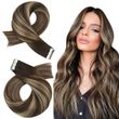 Moresoo Tape in Hair Extensions Balayage Remy Real Human Hair for Women Invisible Seamless PU Skin Weft Straight Hair Tape ins