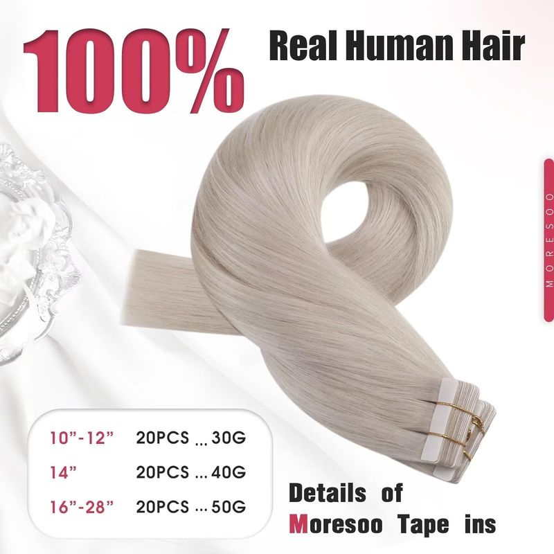 Moresoo Tape in Hair Extensions Balayage Remy Real Human Hair for Women Invisible Seamless PU Skin Weft Straight Hair Tape ins