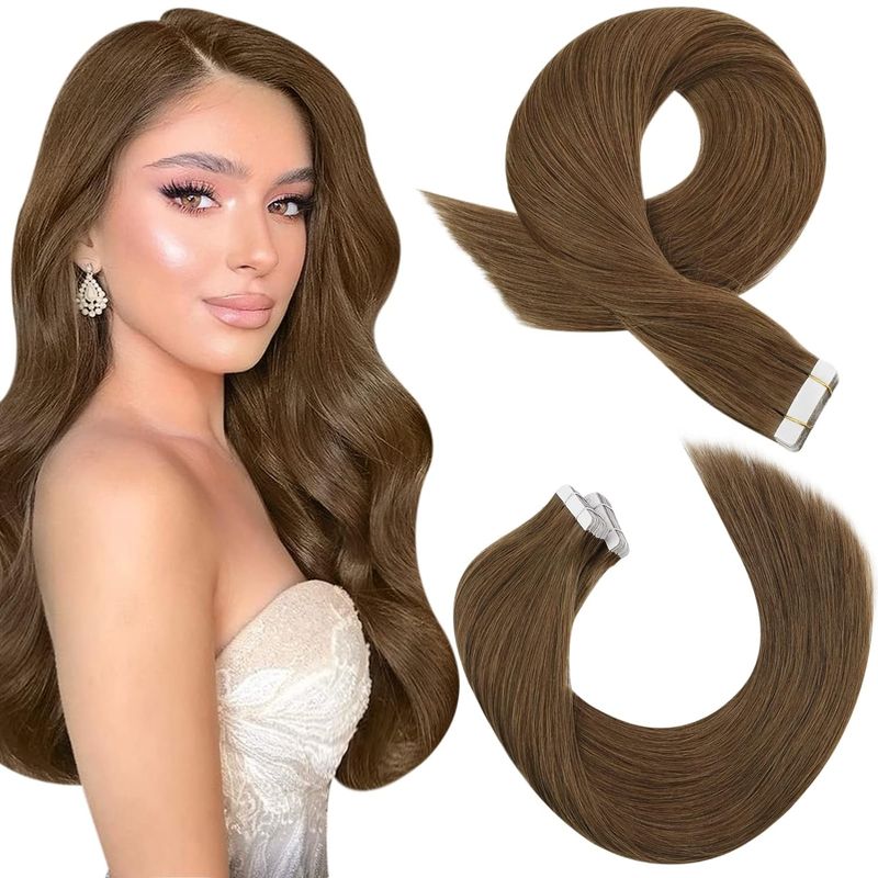 Moresoo Tape in Hair Extensions Balayage Remy Real Human Hair for Women Invisible Seamless PU Skin Weft Straight Hair Tape ins
