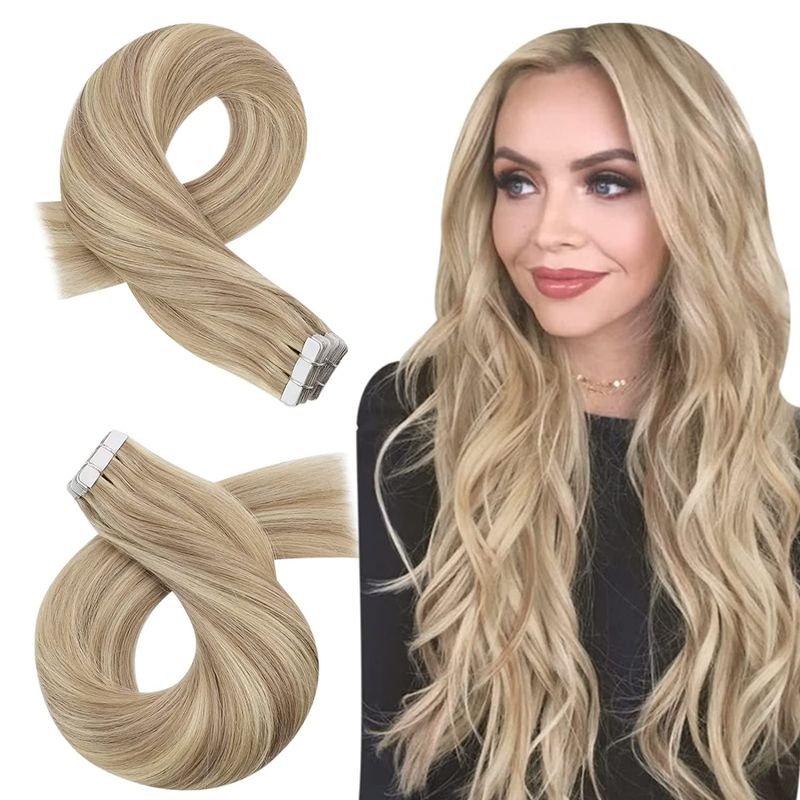 Moresoo Tape in Hair Extensions Balayage Remy Real Human Hair for Women Invisible Seamless PU Skin Weft Straight Hair Tape ins