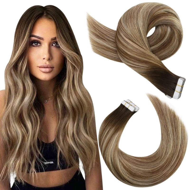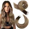 Moresoo Tape in Hair Extensions Balayage Remy Real Human Hair for Women Invisible Seamless PU Skin Weft Straight Hair Tape ins