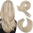 Moresoo Tape in Human Hair Extensions Balayage Blonde Hair Remy Hair Natural Soft Skin Weft Straight Seamless Hair Tape in Hair