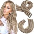 Moresoo Tape in Human Hair Extensions Balayage Blonde Hair Remy Hair Natural Soft Skin Weft Straight Seamless Hair Tape in Hair