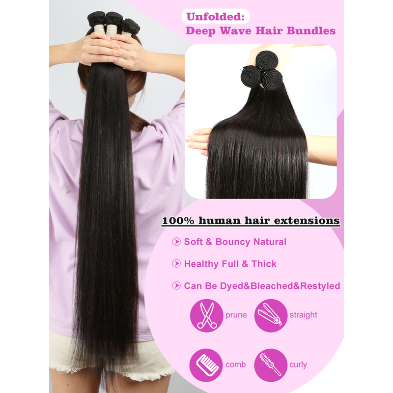 Mossily Brazilian Bone Straight Human Hair 3 4 Bundles Raw Virgin Remy Hair Extensions Natural Color 30 32 Inch Hair For Women