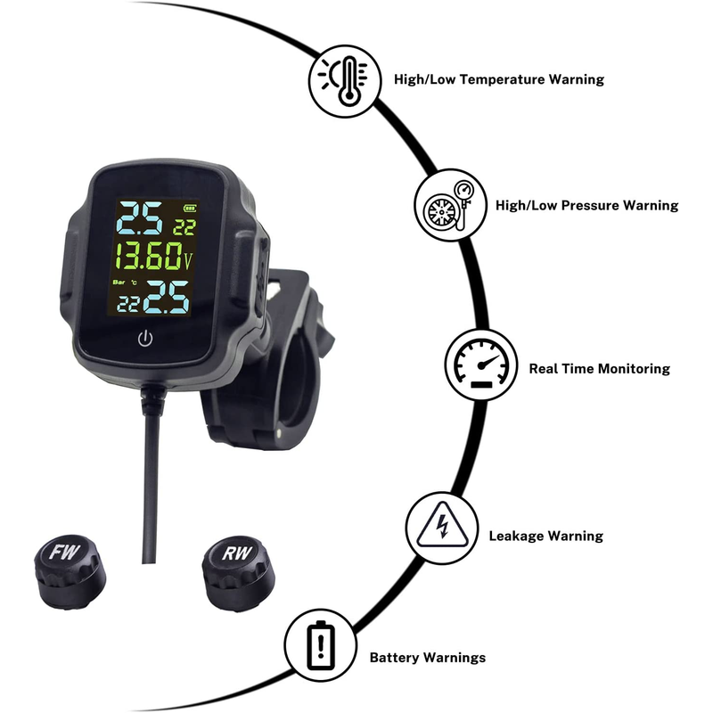 Motorbike /Car Tire Pressure Monitoring System Motorcycle TPMS Tyre Temperature Alarm System with QC 3.0 USB Charger