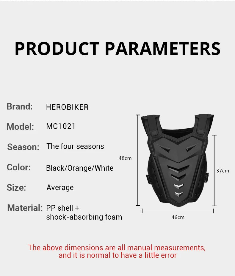Motorcycle Armor Vest Back Chest Protect Motocross Body Armor Jacket Wear-Resistant Anti-Fall Motorbike Riding Protective Gear