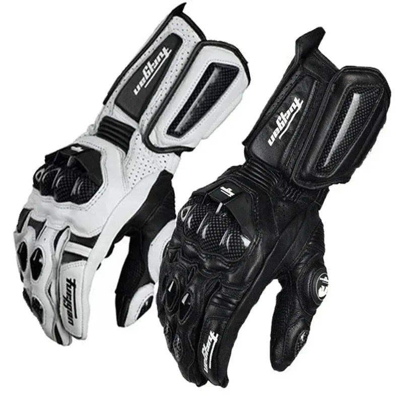 Motorcycle Genuine Leather Carbon Fiber Gloves  Black Racing Cross-country Mountain Bike Riding Rider White Gloves Summer Winter