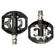 It is a mountain bike pedal with self-locking pedal and flat pedal. The front side is in self-locking mode, and the rear side is in flat pedal mode. Suitable for SHIMANO SPD system.
