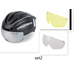 One-piece design, new upgraded version of magnetic silver-plated glasses lenses, USB rechargeable taillights, taillights with multiple adjustment modes, good ventilation system, stylish and gorgeous color matching, sweat-absorbing lining, good-quality nylon webbing, and comfortable The knob-type size adjuster brings you comfortable wearing while adding more security!