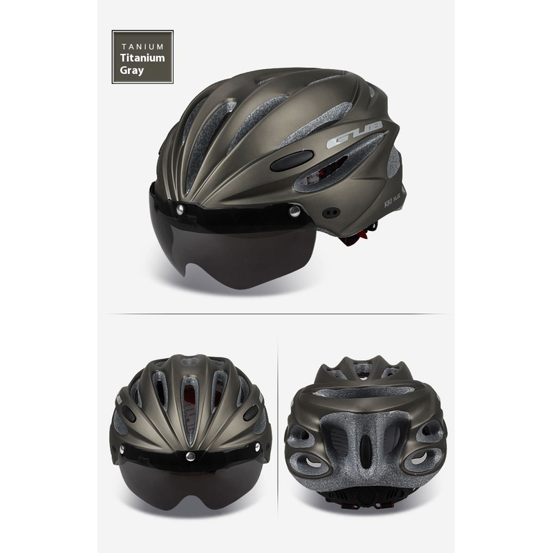 Mountain Bike Integrated Riding Cap Magnetic Goggles Helmet Aurora Blue L
