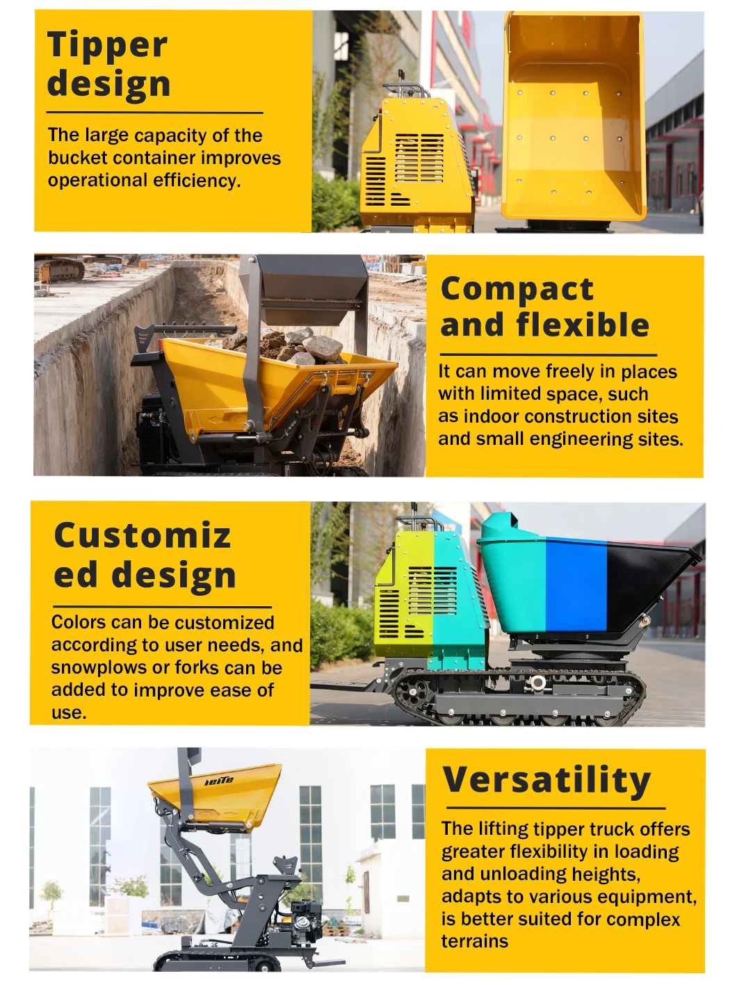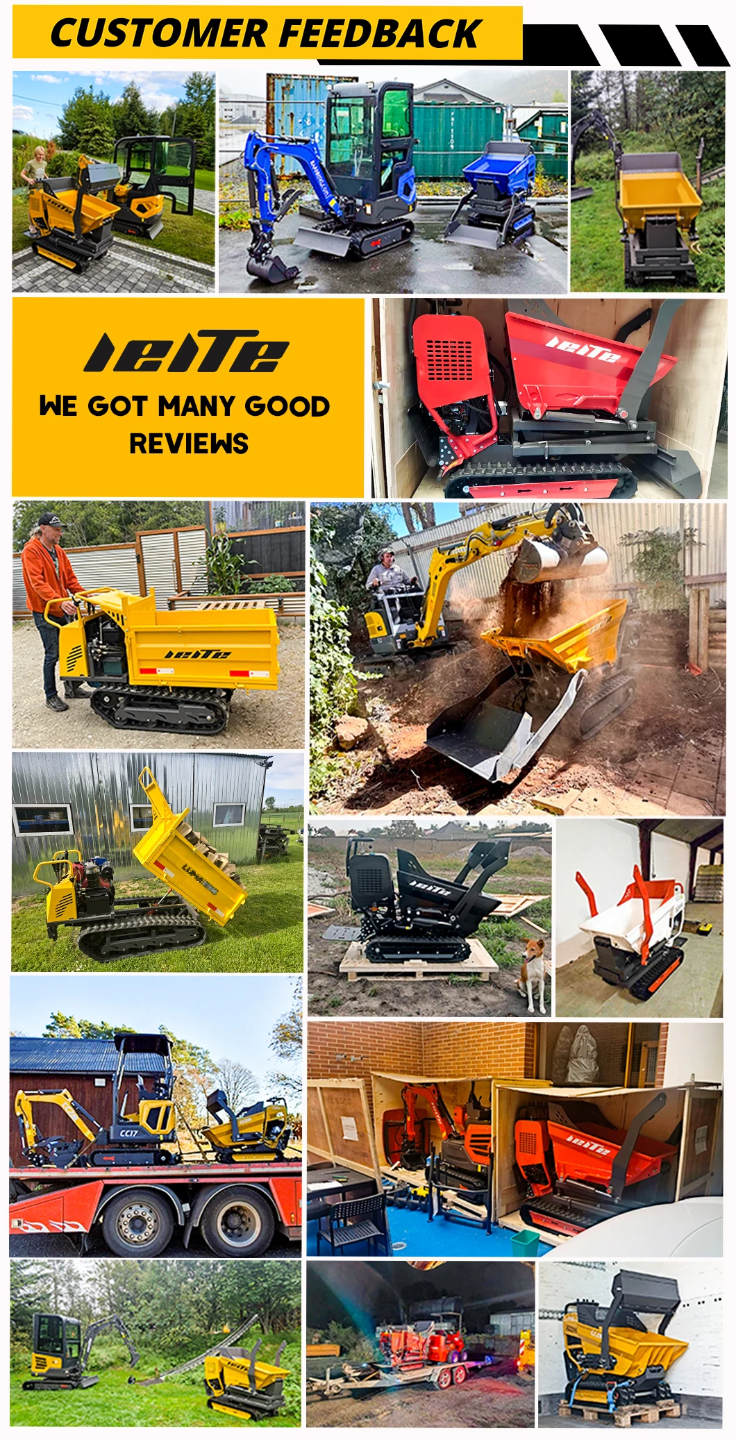 The LEITE mini dumpers are sold all over the world. Due to the excellent quality and excellent after-sales service of our mini dumpers, they have gained the trust and support of customers from all over the world, and have received numerous positive reviews!