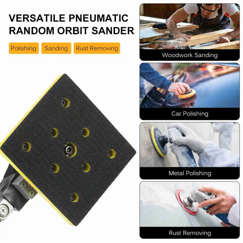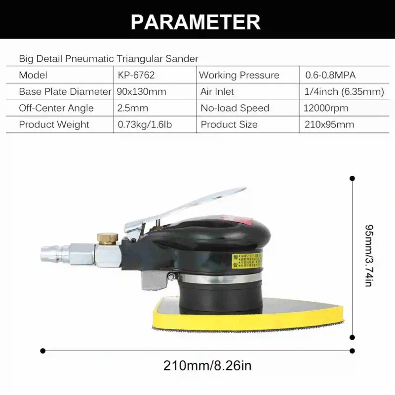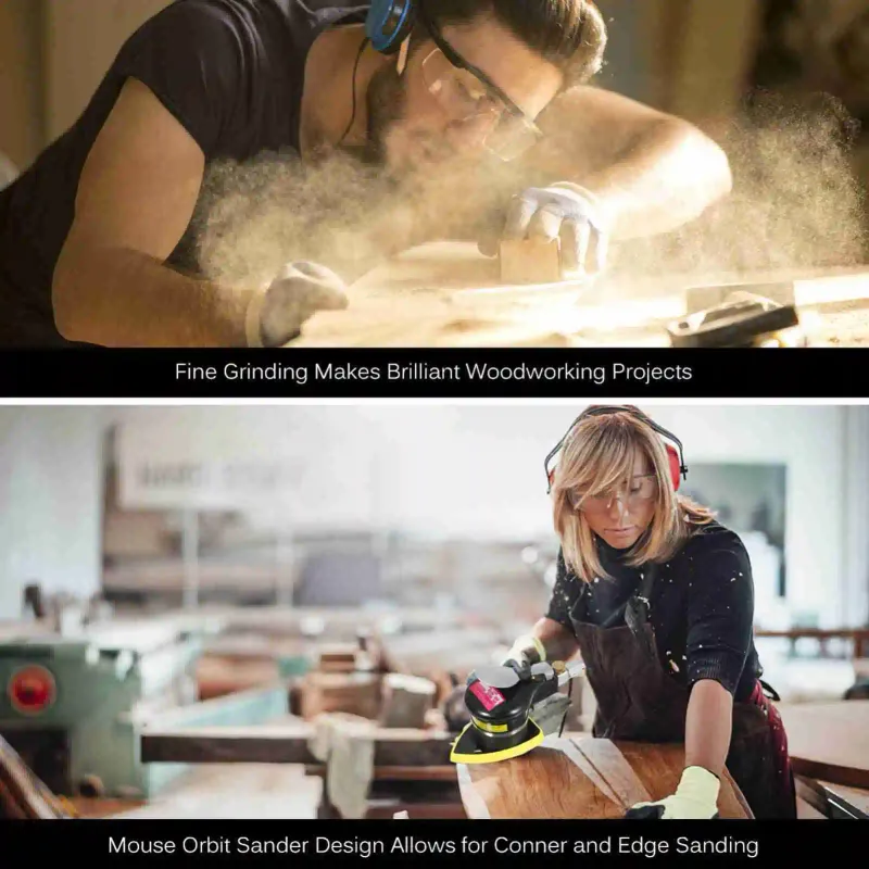 1. High Performance -- Built-in regulator of the sanding machine is for speed control and free speed can reach 12000 rpm per minute to improve work efficiency. Fast grinding speed, low air consumption and low noise, easy to deal with various rough surface.