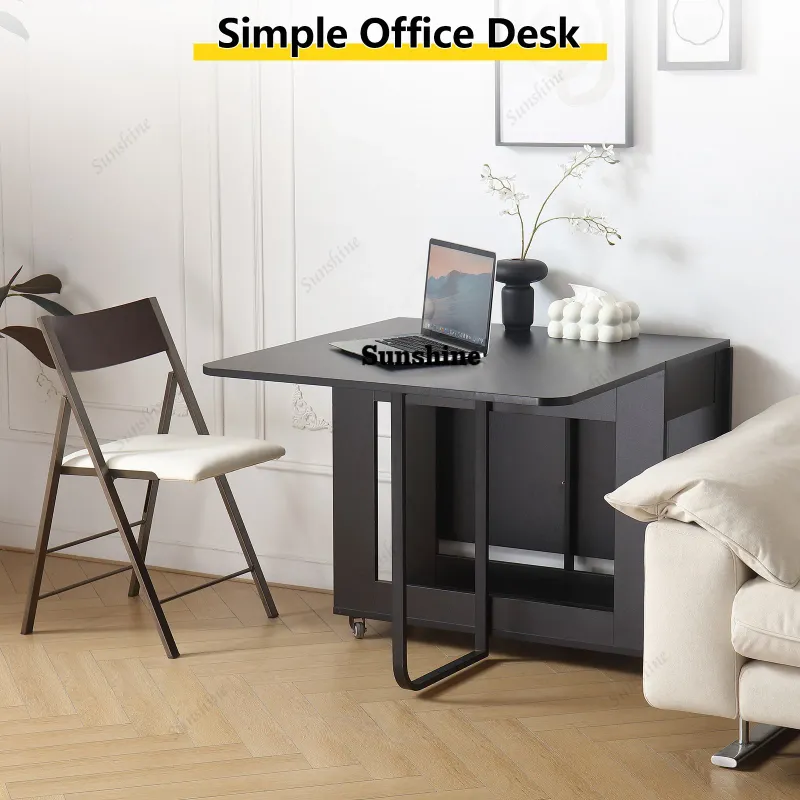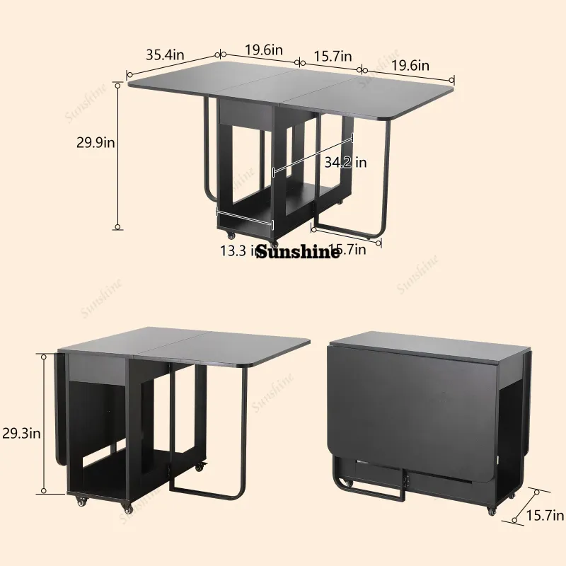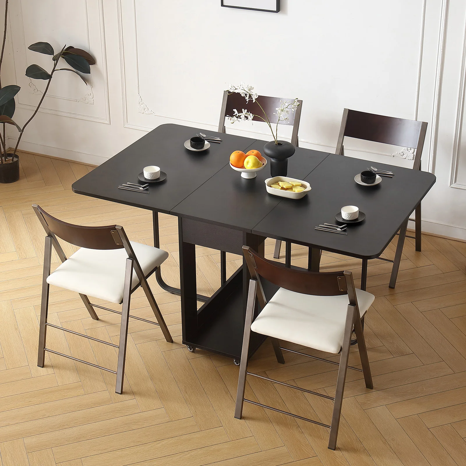 Movable Folding Dining Table with Storage Rack and 2 Drawers Extendable Versatile Kitchen Table and Steel Folding Dining Chairs
