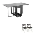 Movable Folding Dining Table with Storage Rack and 2 Drawers Extendable Versatile Kitchen Table and Steel Folding Dining Chairs