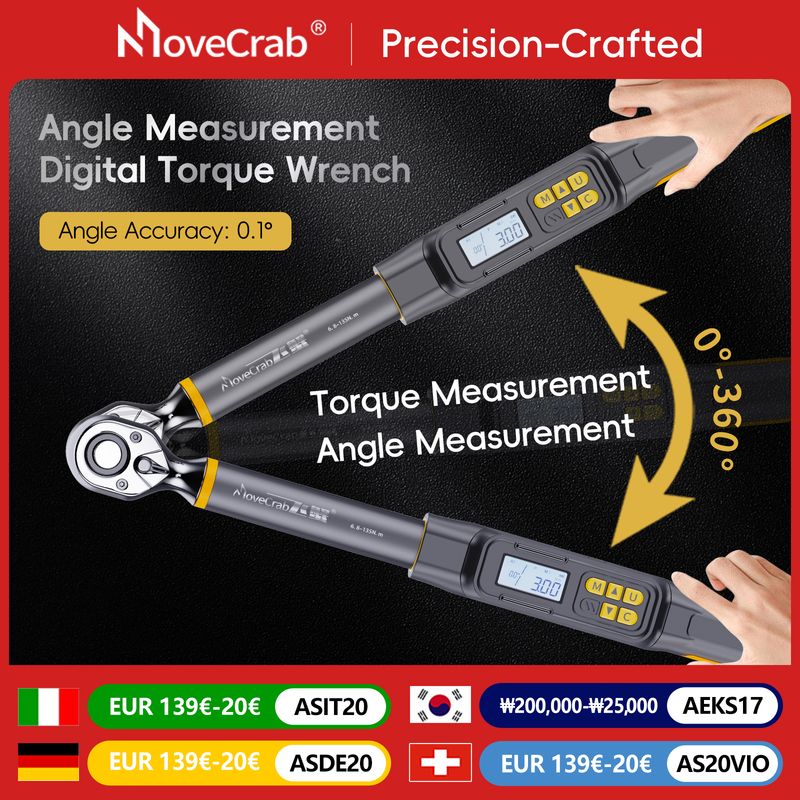 MoveCrab 3/8" 1/2" Drive Digital Angle Torque Wrench 3-340 N.m Angle Measurement 0.1°for DIY Auto Motorcycle Repair