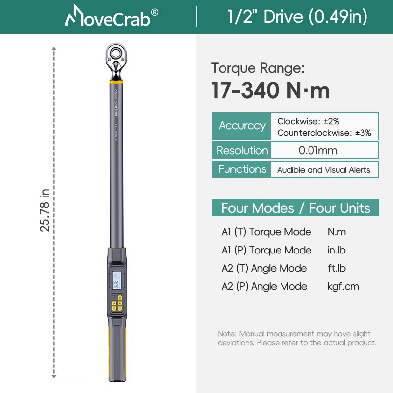 MoveCrab 3/8" 1/2" Drive Digital Angle Torque Wrench 3-340 N.m Angle Measurement 0.1°for DIY Auto Motorcycle Repair