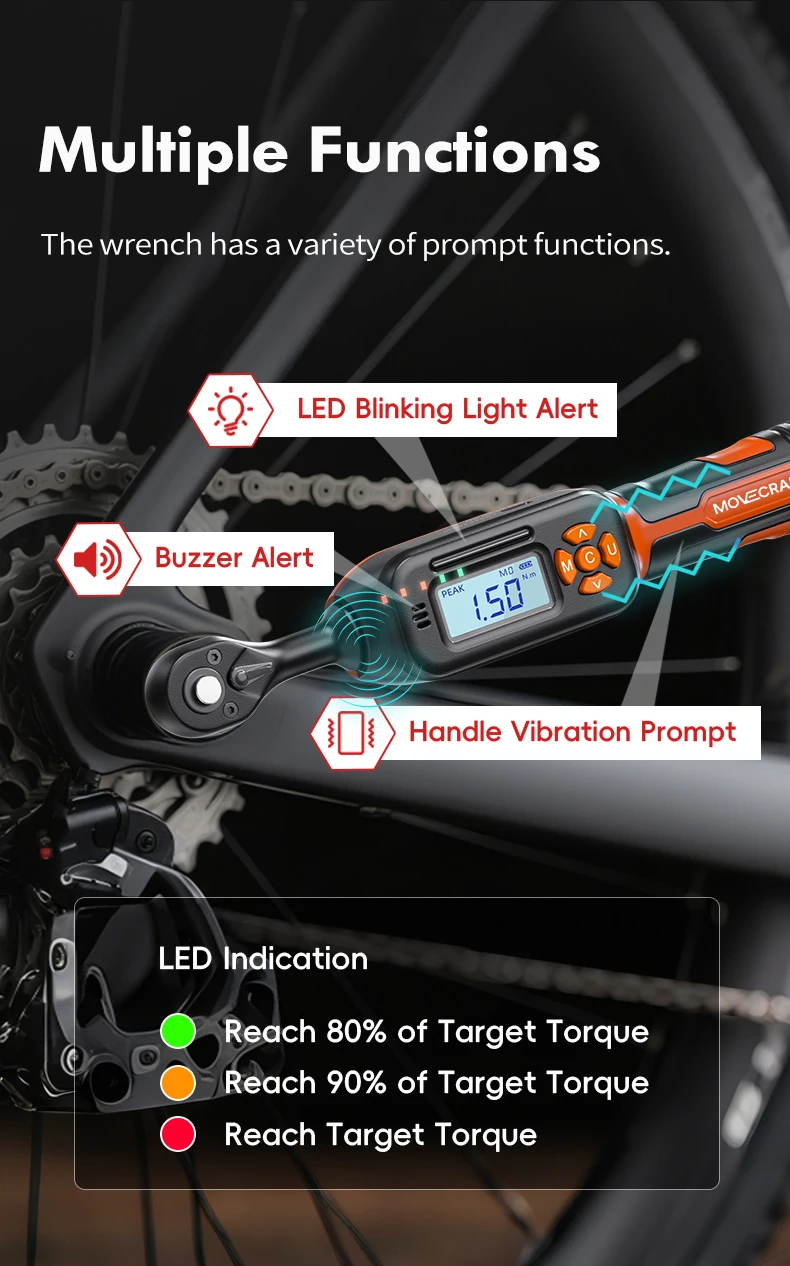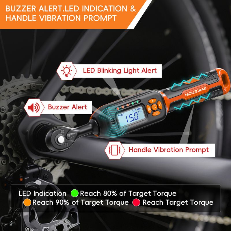 【Smart Digital Features for Error-Proof Fastening】High Precision Digital Torque Measurement:This digital torque wrench provides accurate and consistent torque readings with a high-precision sensor system. It offers real-time measurements in Nm, ft-lb, in-lb, kgf-cm,ensuring precise tightening to meet exact specifications for various applications