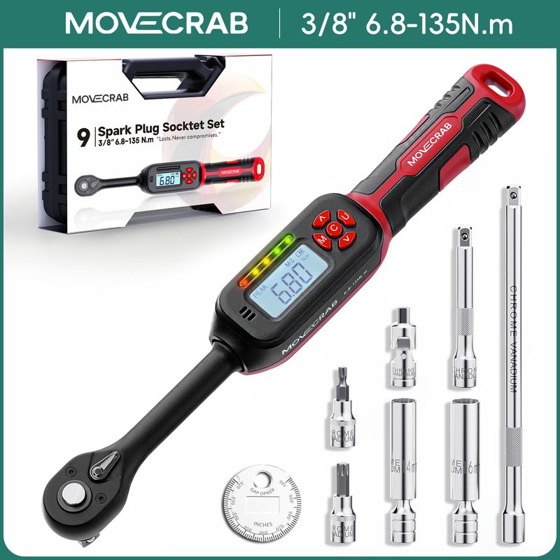 MOVECRAB 40Pcs Bike Digital Torque Wrench Set, 1/4-Inch Drive 1-22 Ft.lb/1.5-30 N.m with Bits & Sockets for repairing Bike