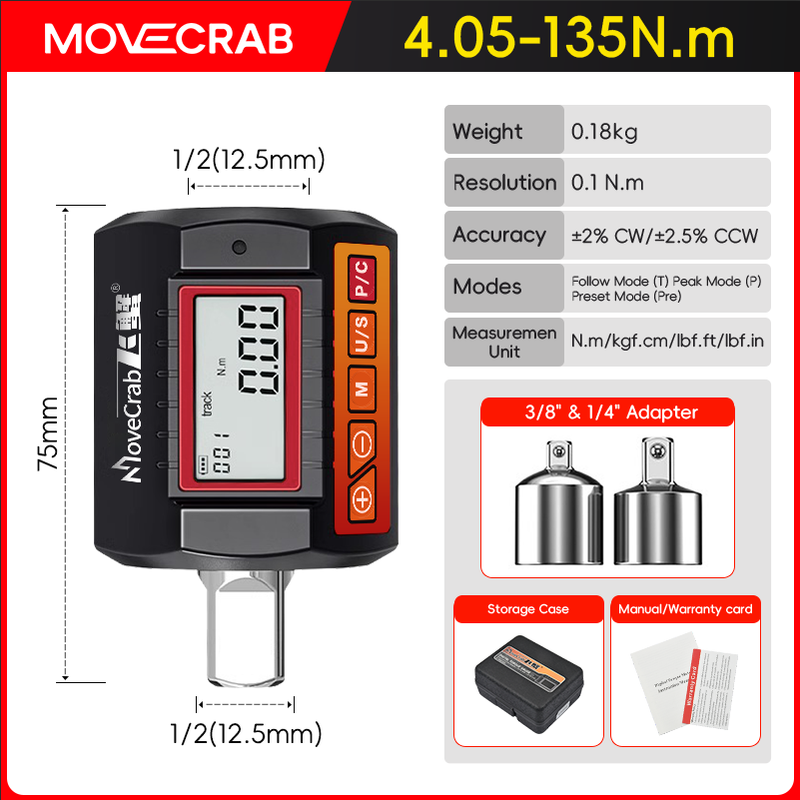 MoveCrab Digital Torque Adapter 1/2"Drive Include Adapters for 3/8" and 1/4" Electronic Torque Wrench Bike Set Car Repair Bike