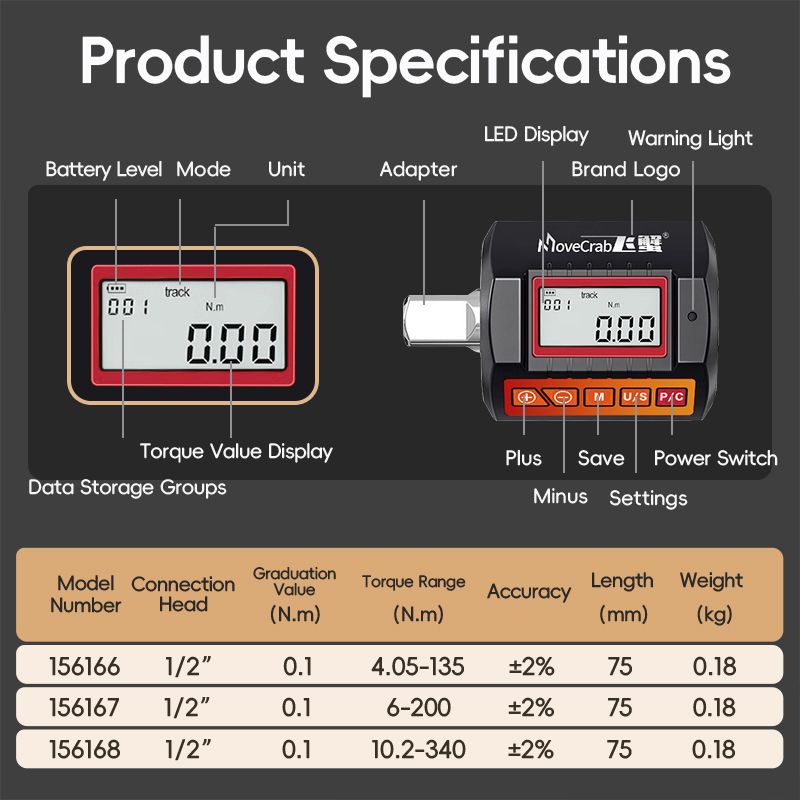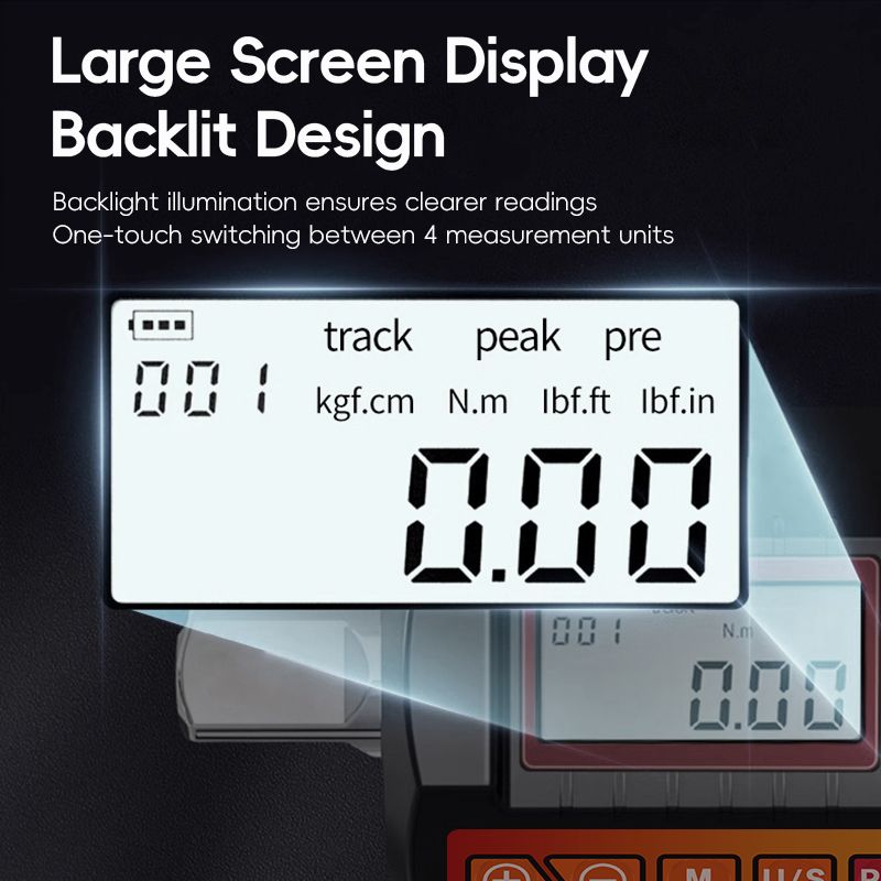 Multiple Torque Units: Switch between kgf.cm, Nm, lbf.ft, and lbf.in with ease, ensuring versatility for various applications.