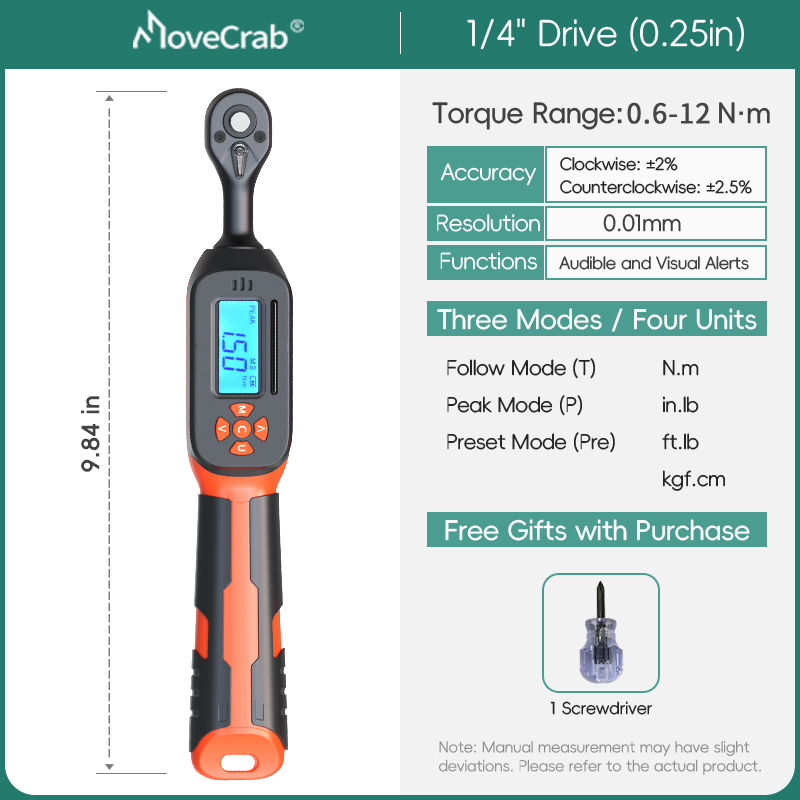 MOVECRAB Digital Torque Wrench 1.5-340N.m with Preset Values 2% Accuracy Buzzer and LED Flash Notification