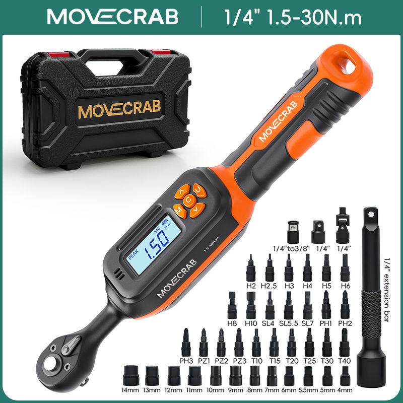 MOVECRAB Digital Torque Wrench 1.5-340N.m with Preset Values 2% Accuracy Buzzer and LED Flash Notification