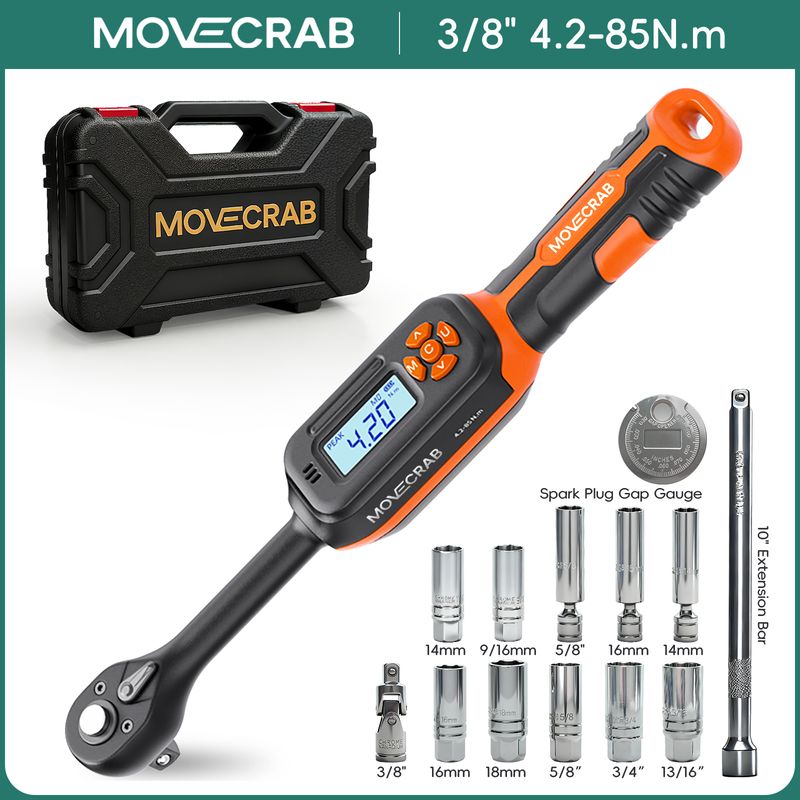 MOVECRAB Digital Torque Wrench 1.5-340N.m with Preset Values 2% Accuracy Buzzer and LED Flash Notification