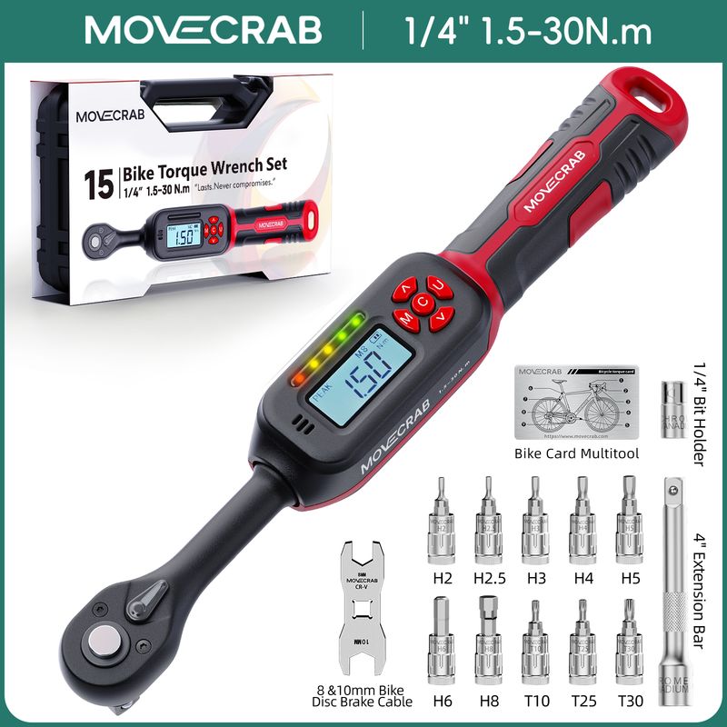 MOVECRAB Digital Torque Wrench 1.5-340N.m with Preset Values 2% Accuracy Buzzer and LED Flash Notification