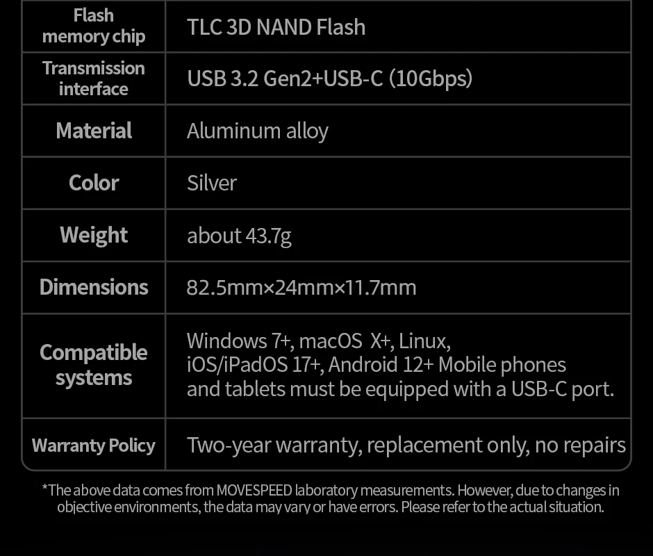 Model Name: MOVESPEED SU10 2-in-1 USB 3.2 Flash Drive