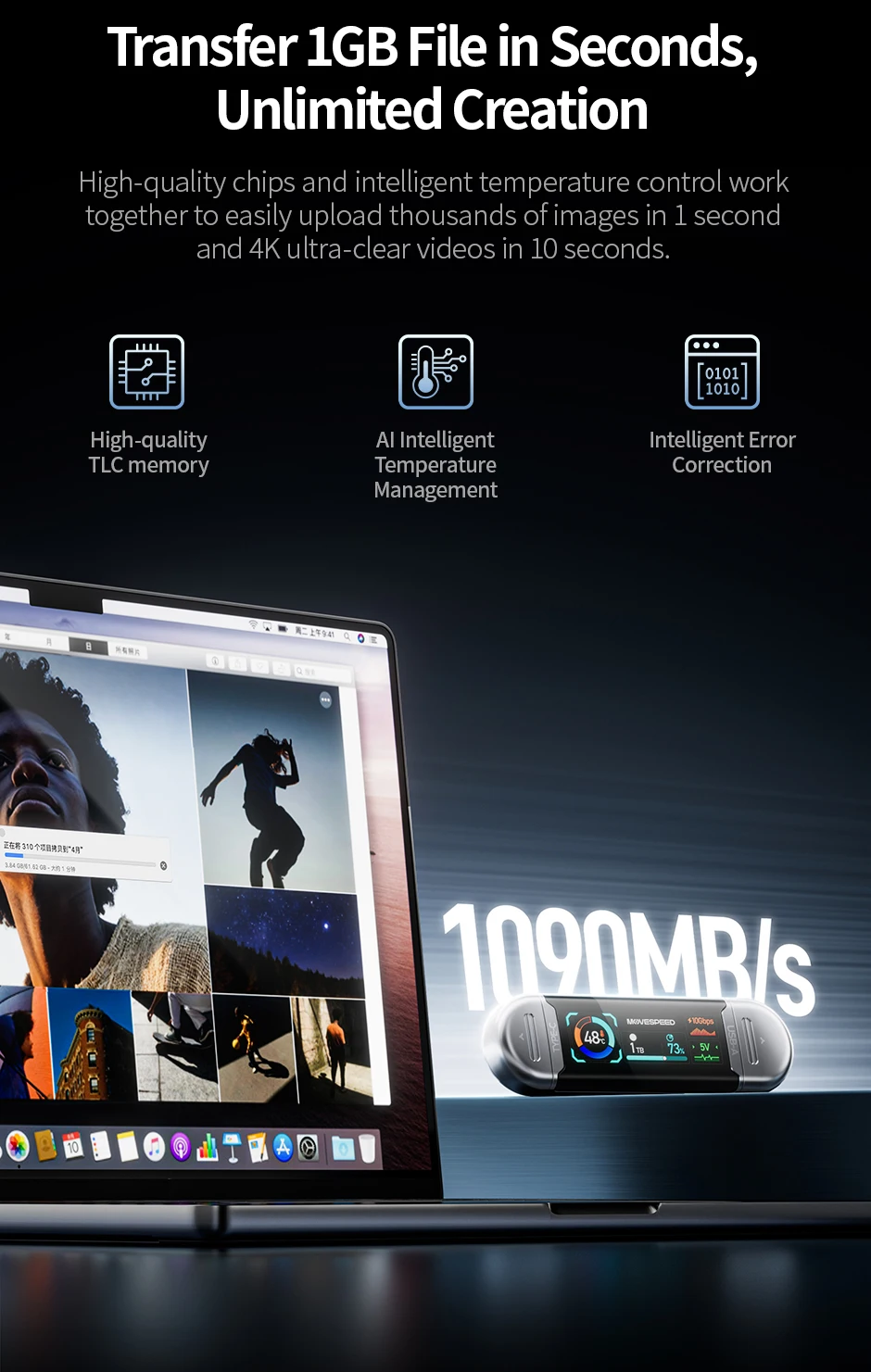 ■ Super-fast solid state performance, read and write speeds of up to 1090MB/s