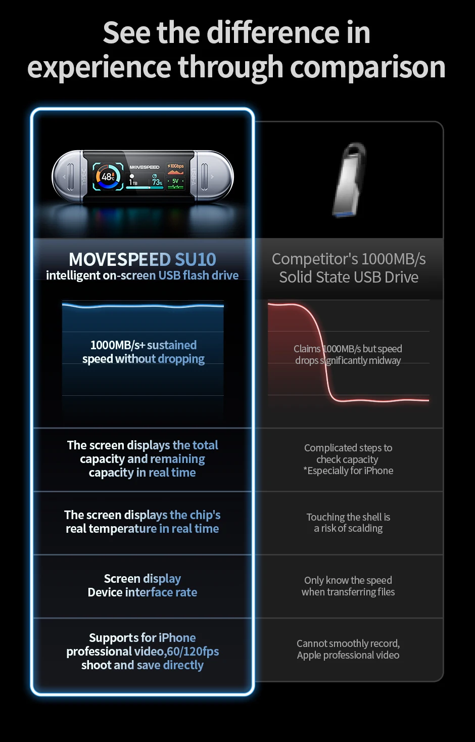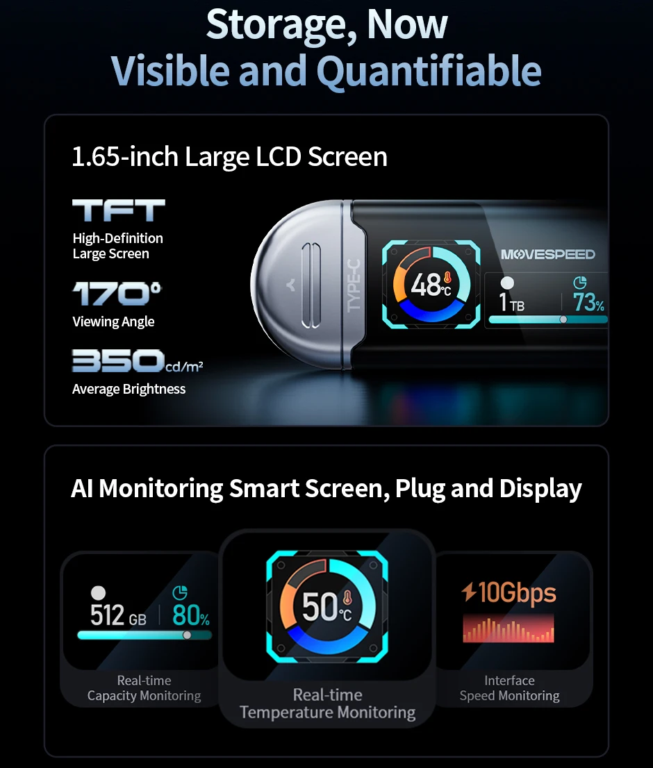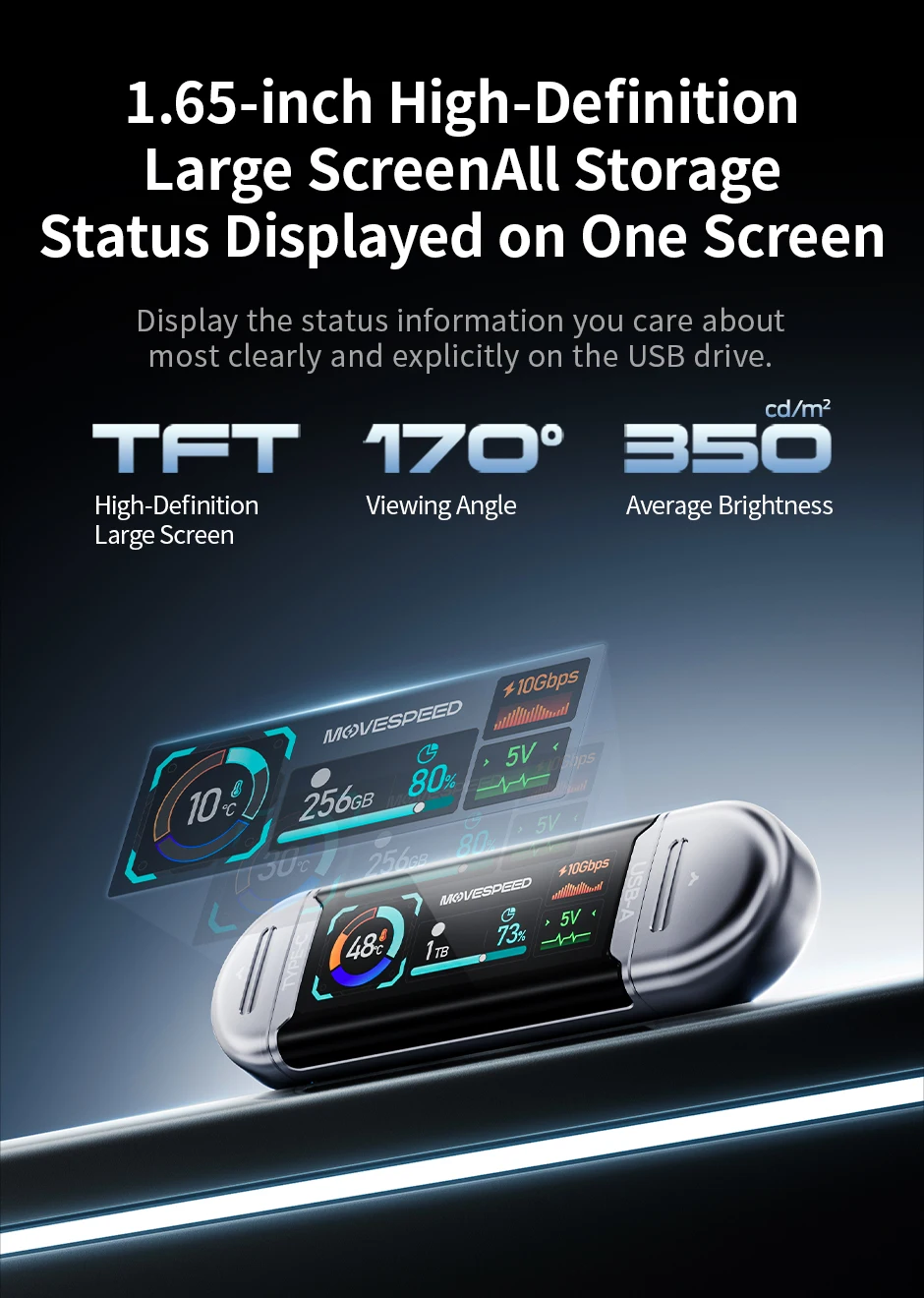 MOVESPEED SU10 1090MB/s Solid State PenDrive 2TB 1TB 512GB 256GB 128GB LCD USB3.2 Gen2 Type C Flash Drive for iPhone 15/16/17 PC