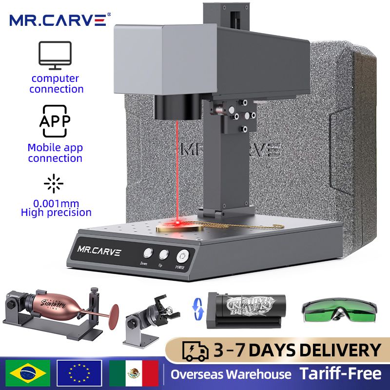 MR.CARVE Fiber Laser Marking Machine M1 Pro Laser Engraver 70x70mm Area Engraving Machine for All-Metals Plastics Jewelry