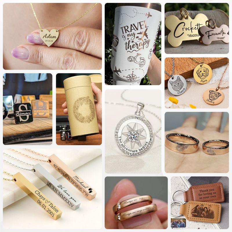 10.Engraving materials: meet most metal and non-metal (metal pet brand, metal pendant, stainless steel kettle, plastic buttons, PVC pipe, plastic shell, acrylic plate, leather wallet and wine jug, metal U disk, electroplated metal, stainless steel material