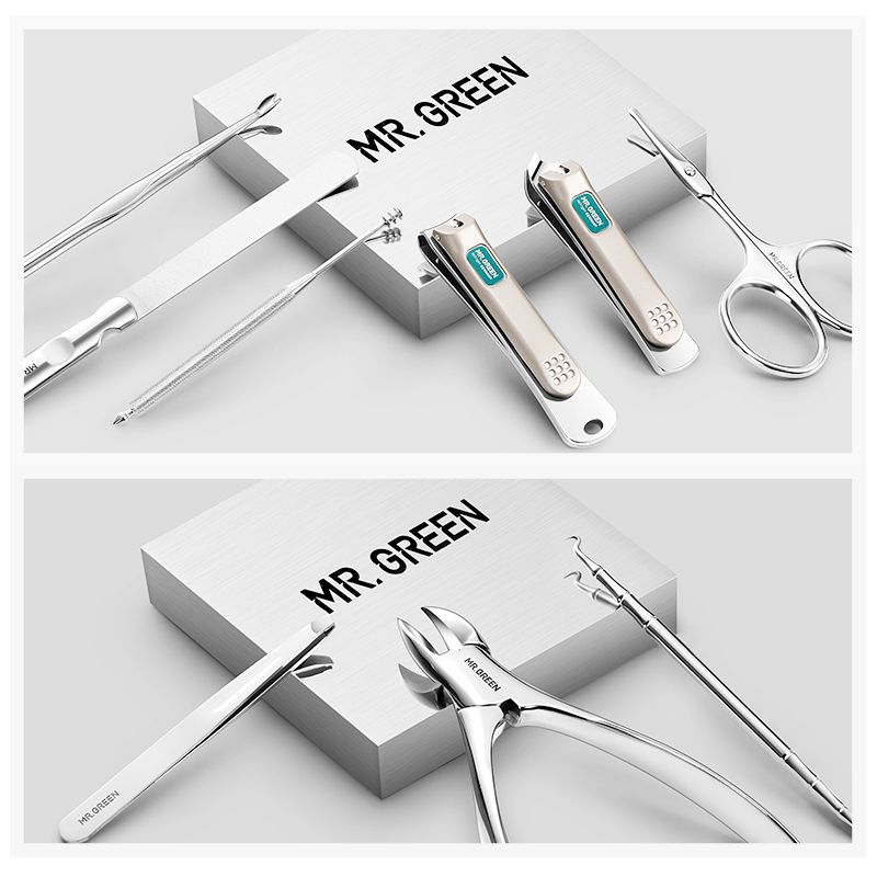 including many practical accessories:Nail Clipper, Oblique Clipper, Olecranon toenail clipper, Facial Hair Scissors,Nail File, Eyebrow Tweezer, Ache Needle, Ear Pick,Cuticle Remover.