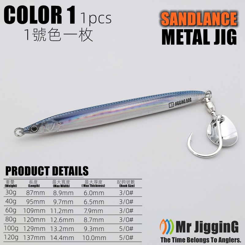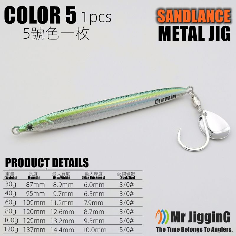 Mr JigginG Biomimetic Sandlance Metal Jig 30g 40g 60g 80g 100g 120g Spanish Mackerel Lure Katsuo Fast Hairtail Fishing Bait