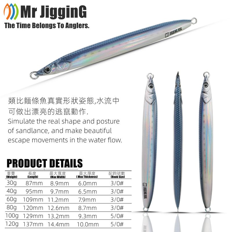 Mr JigginG Biomimetic Sandlance Metal Jig 30g 40g 60g 80g 100g 120g Spanish Mackerel Lure Katsuo Fast Hairtail Fishing Bait