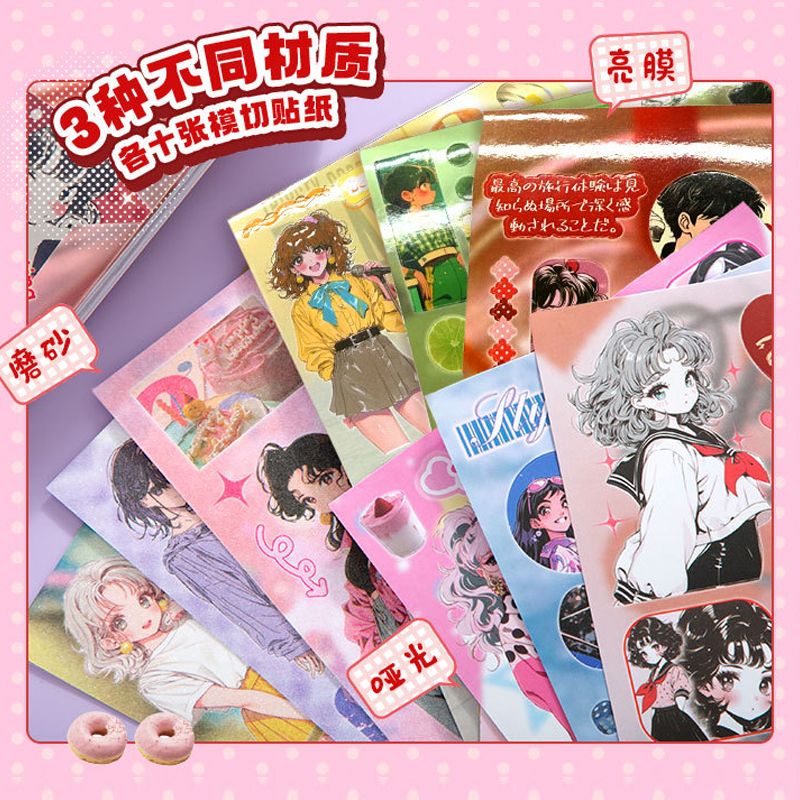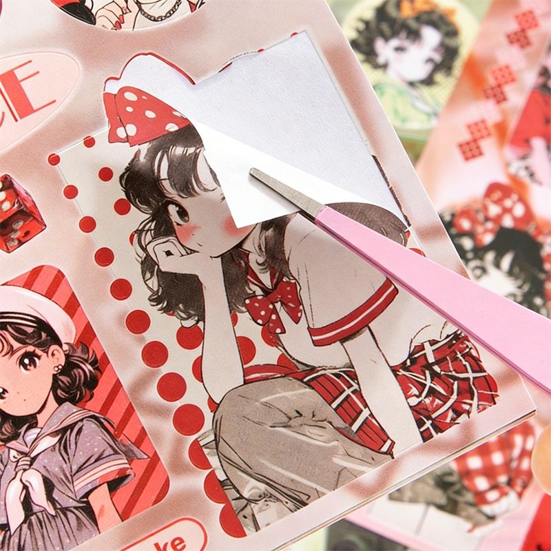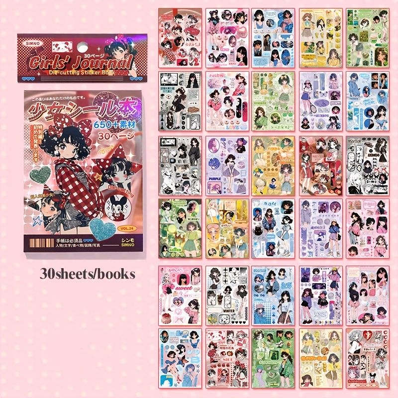 Mr. Paper 30pcs Japanese Showa Sticker Book, Y2K Memory Theme, Vintage Cute Cartoon Dress-Up Diorama DIY Handbook Journal Materi