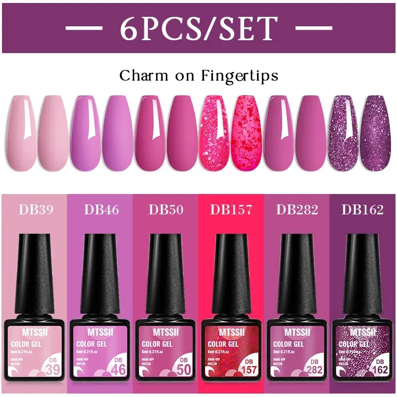 MTSSII 6PCS Nude Brown Gel Nail Polish Set Soak Off Nail Art LED UV Gel Varnish Nail Supplies Manicure Kit for Nails Manicure