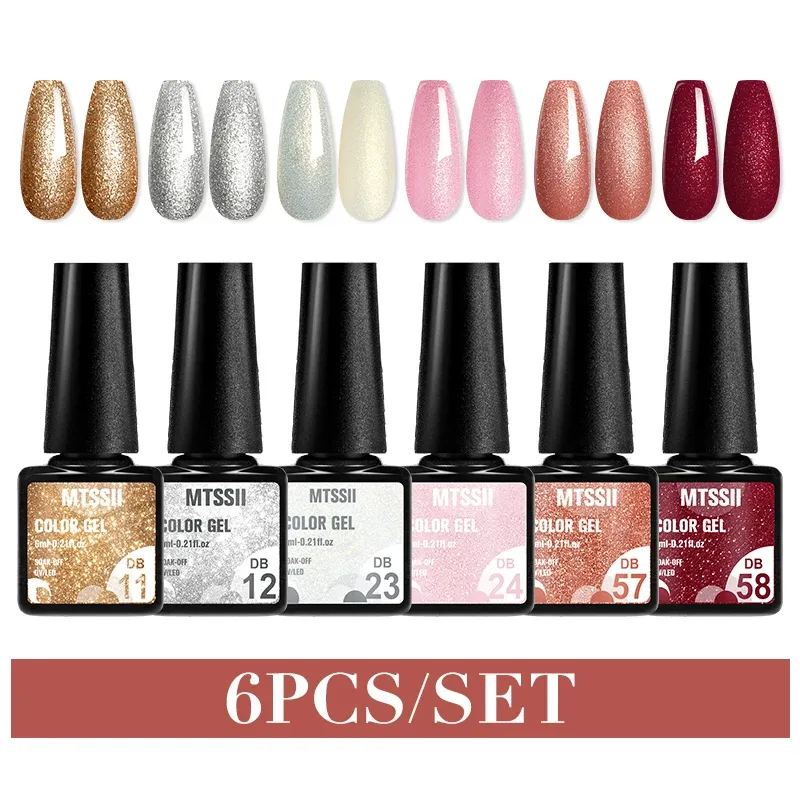 MTSSII 6PCS/Set Sparkly Red Roes Red Gel Nail Polish Shinning Nail Art LED UV Gel Varnish Nail Supplies Manicure Kit for Nails