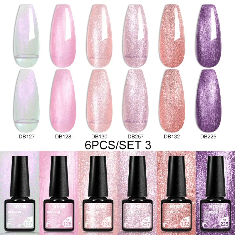 MTSSII 6PCS/Set Sparkly Red Roes Red Gel Nail Polish Shinning Nail Art LED UV Gel Varnish Nail Supplies Manicure Kit for Nails