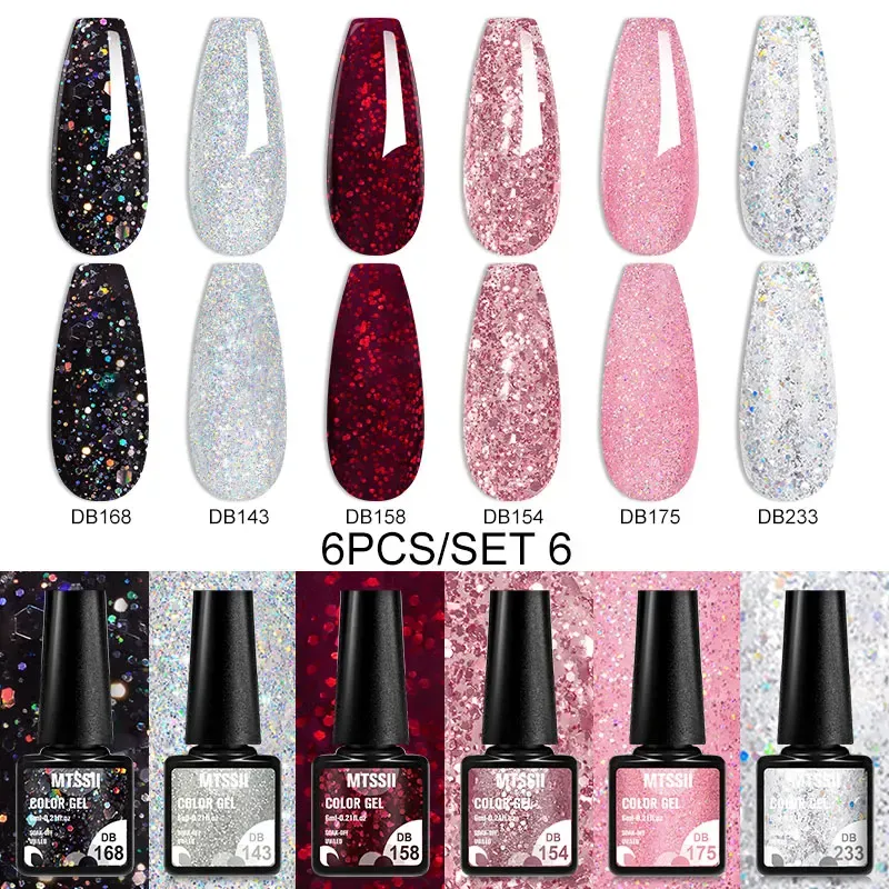 MTSSII 6PCS/Set Sparkly Red Roes Red Gel Nail Polish Shinning Nail Art LED UV Gel Varnish Nail Supplies Manicure Kit for Nails