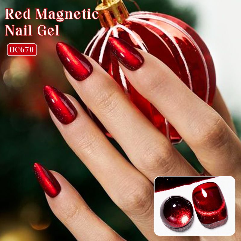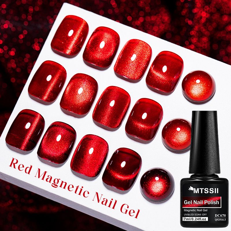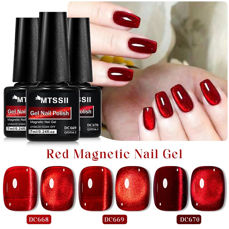 Mtssii 7ML Wine Red Cat Magnetic Gel Nail Polish Super Shiny Ruby Red Cat Eye Gel Soak Off UV Semi-Permanent Nail Art Varnish