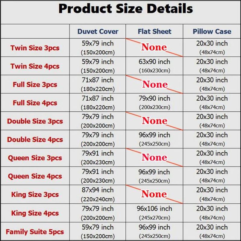 4pcs Set with 1pc duvet cover, 1pc sheet and 2pcs pillowcase